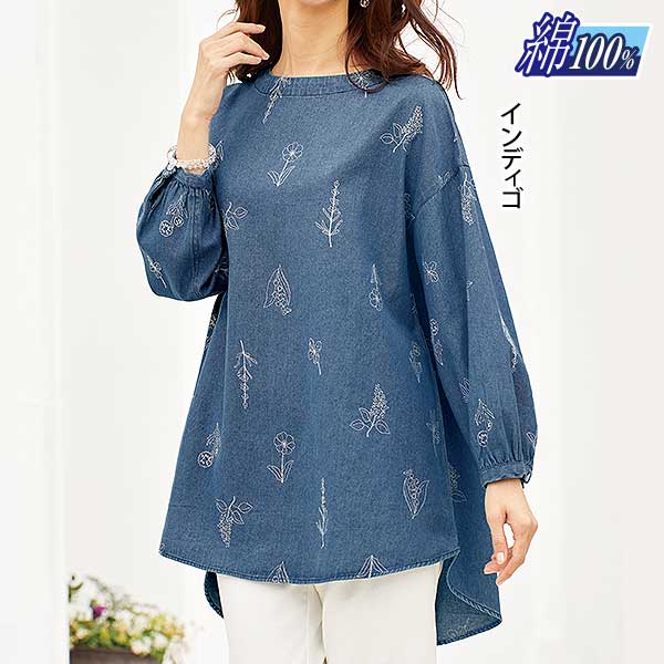 ボタニカル刺しゅうデニムチュニック インディゴ